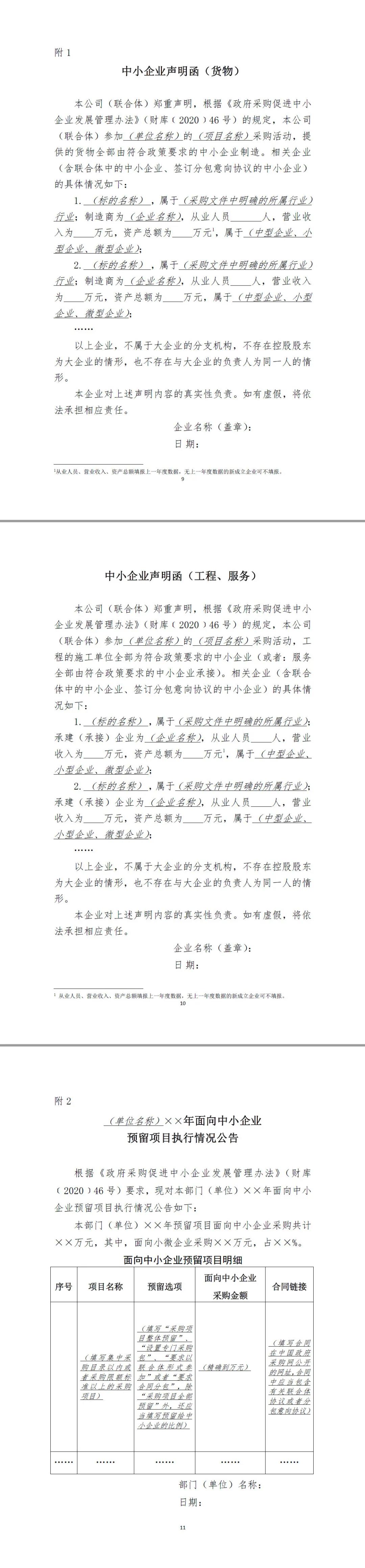 第十一條 中小企業參加政府采購活動,應當出具本辦法規定的《中小企業聲明函》(附1),否則不得享受相關中小企業扶持政策。任何單位和個人不得要求供應商提供《中小企業聲明函》之外的中小企業身份證明文件。