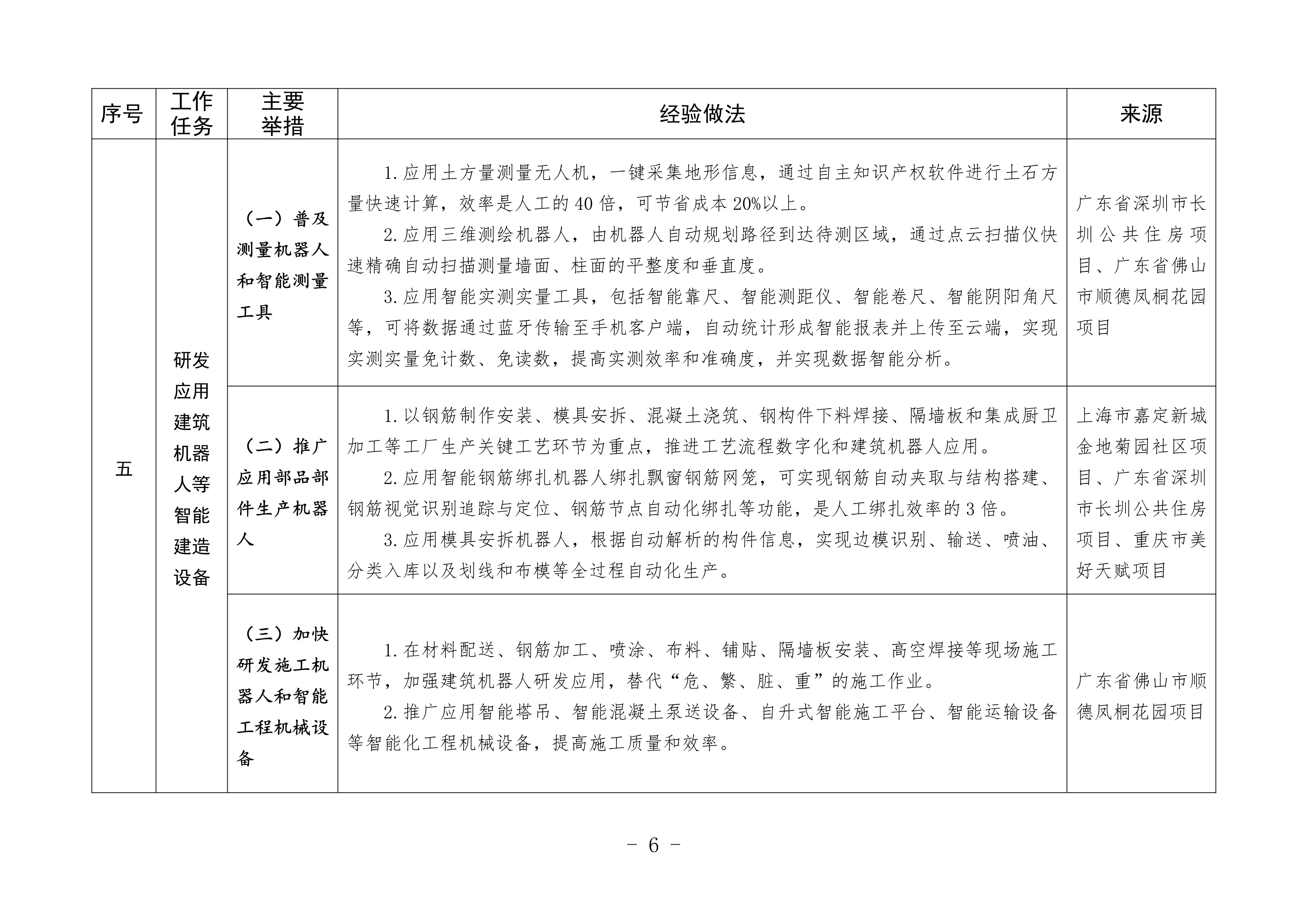 近日,住房和城鄉建設部辦公廳印發了智能建造與新型建筑工業化協同發展可復制經驗做法清單(第一批)的通知,重點如下: